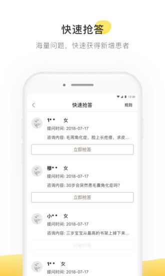 1、在线问答:自愿参与、熟悉诊疗、获取患者、答疑启迪。