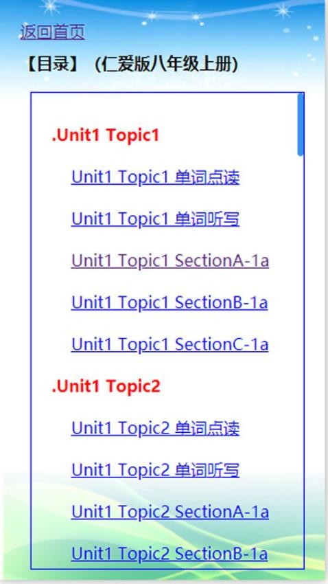 初中英语仁爱版八年级上册APP是一款线上英语学习软件,通过单词和课文的背诵以及理解,帮助用户能够更好的进行英语学习,通过课后练习进行知识点的巩固,为用户打造更好的英语学习环境,提高用户英语学习兴趣。