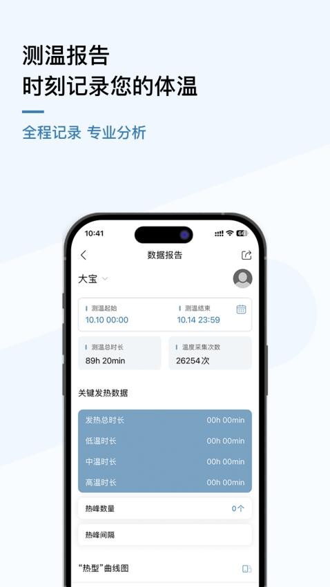 软件会将宝宝的发热总时长、低温时长、中温时长等体温数据进行展示