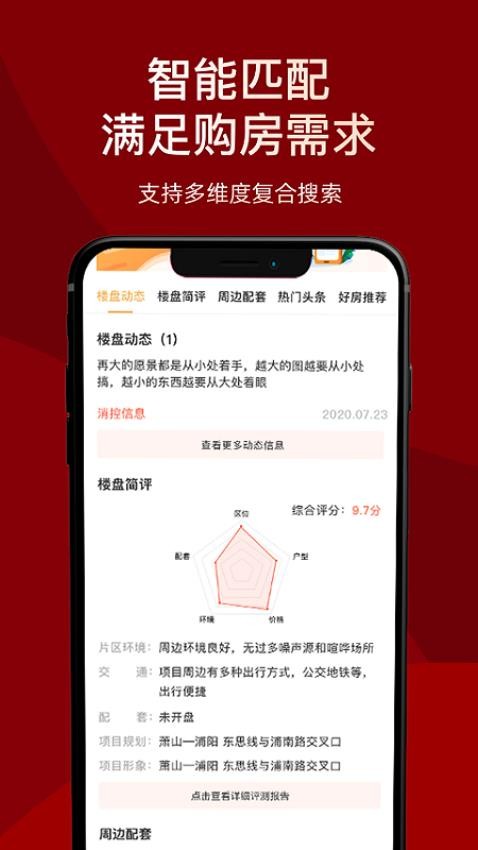 5.在楼盘动态查看楼盘的相关信息,楼盘的综合评分、环境、配套、项目规划等