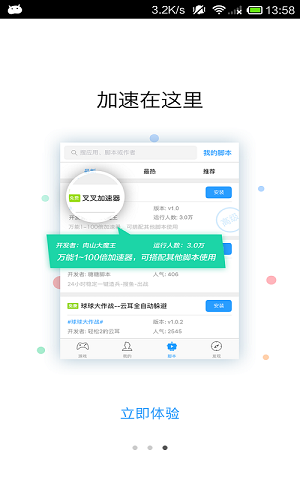 2、最专业的游戏变速神器,加减速任你支配!技术含量高,操作简单易用,效果立即生效,完美支持市面上99%的手游,掌控自己的游戏节奏!