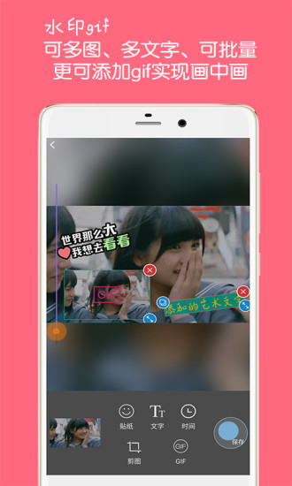 2、可以为图片添加文字、批量水印、一键添加水印gif,并提供高级图片编辑、水印拍照等操作,让用户轻松创建个性化的图片文字。