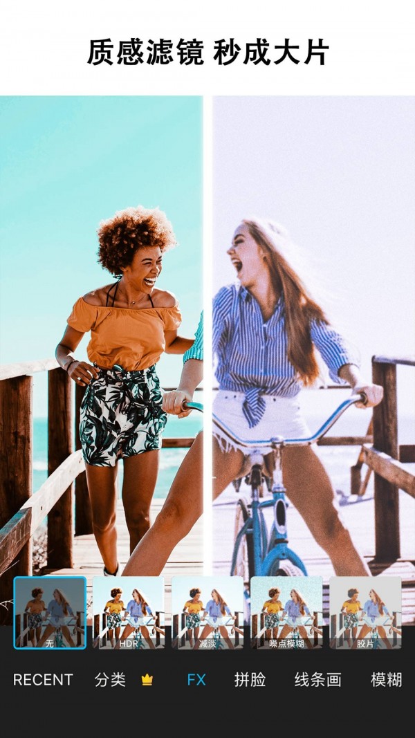 一个功能齐全的照片编辑器!多种滤镜、海报、贴纸等多种效果功能,让你以任何方式美化你的照片,镜像、虚化、马赛克、混合、nomo等,让照片编辑更轻松、更有效。