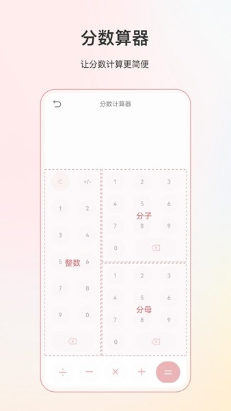 全能分数计算器是一款集多个实用功能于一体的手机计算器工具,界面美观可爱,体积小巧,计算速度高效。它具备基础计算器、科学计算器、进制转换、日期计算器、汇率换算、单位换算、大小写转换、五险一金计算、房贷计算器、自定义公式等功能,支持快速获取所需结果。软件占用内存小,使用方便,适合各种计算需求,还能计算BMI指数,是一款功能全面、使用方便、占用空间小的超级计算器。