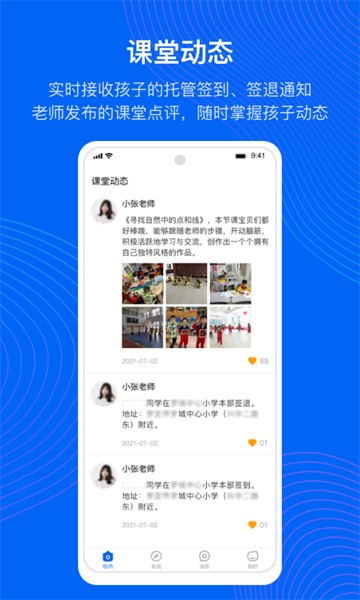 1、强大的智能安全系统:具有智能接送、课堂动态等强大功能,保障百余名学生校外托管安全,