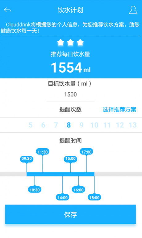 2、自定义提醒功能,可以提醒我们在规定的时间内喝水。