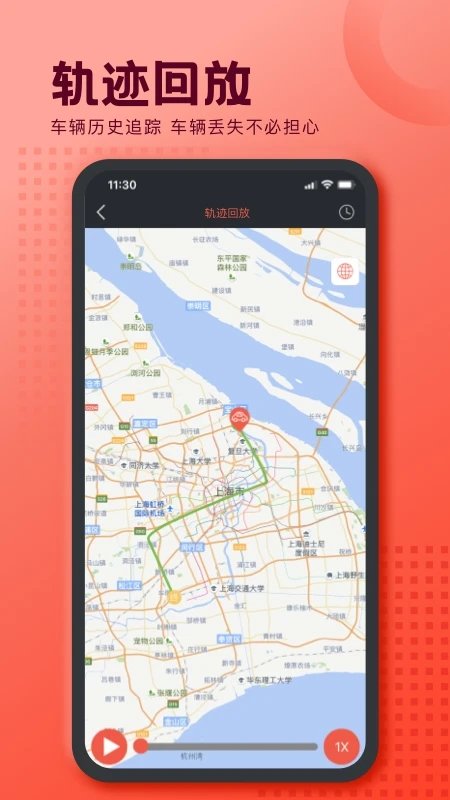 3、轨迹回放更简单,可以找到对应时间段的行驶轨迹;