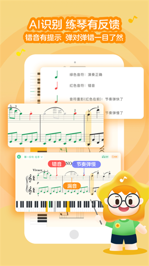3、AI识别,智能纠错:小星星AI智能陪练,识别错音、漏音、节奏、流畅度,