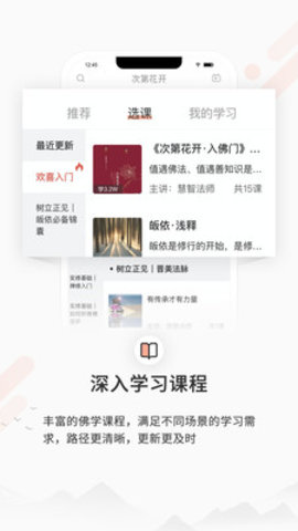 2、内置了多种与佛教相关的课程和学习资料,可以帮助用户更深层次地了解佛教;