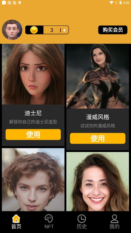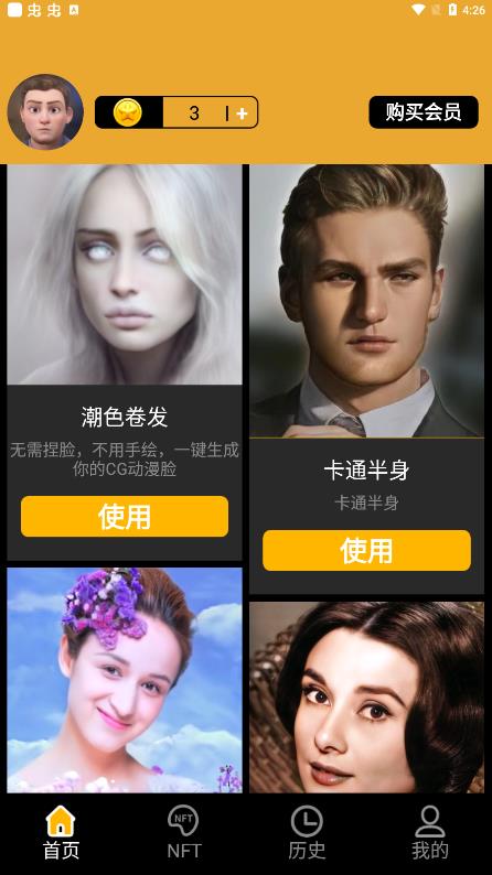 2、它可以利用AI技术进行人脸编辑应用,还提供漫画人物肖像服务。