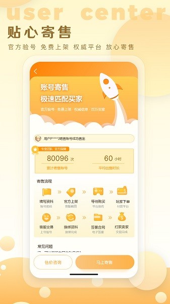 2、软件具有寄售、回收、一键转售、换号、中介等一系列功能。