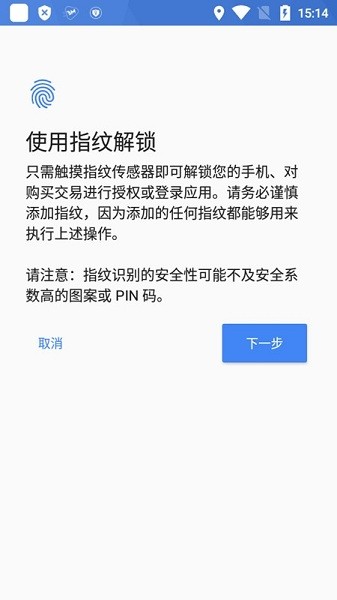 1、提供多重安全措施:本软件除了指纹解锁外,还可以与其他解锁方式结合使用,提供多重安全措施,增加对手机数据的保护。