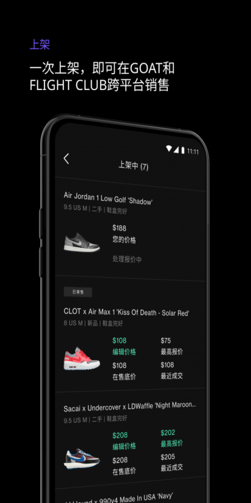 4)全球买家:软件连接全球买家,直接和来自世界各地的球鞋发烧友交流、购买,体验全球购物的乐趣。