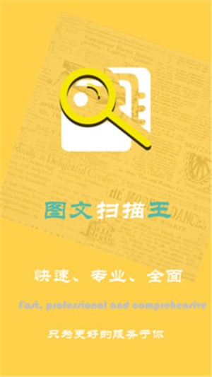 图文扫描王是可以在有需要的时候快速的扫描相关的文件和信息的软件,还有翻译功能可以使用,还有票据可线上扫描翻译,只能用最麻烦的方法去操作,支持文字、图文以及视频内容的扫描功能,图文扫描王app中包含了文本识别、身份证扫描、格式转化等功能为您服务,希望大家喜欢。