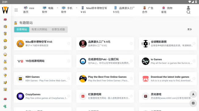 3、在每个区域,我们都可以看到很多网站,无论热门与否,都可以在平台上轻松打开。