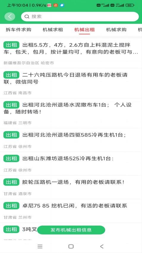 2、同时支持用户在网上免费发布自己的需求信息。它可以结合图文方式提供机械设备的供需信息。支持用户在线联系商户,部分商户在线沟通进行租赁交.易。