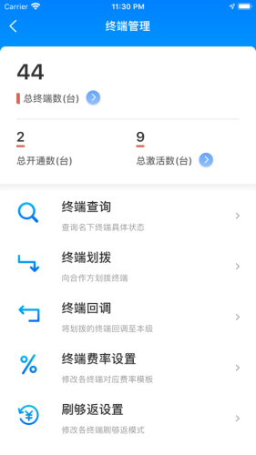 2、平台功能丰富,让用户全方位在线管理商户、交.易、收入等。