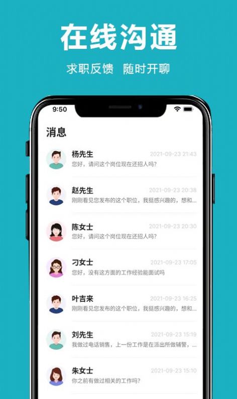 *与企业招聘人员进行实时沟通,方便了解更多职位信息,增加了沟通和交流的便捷性。