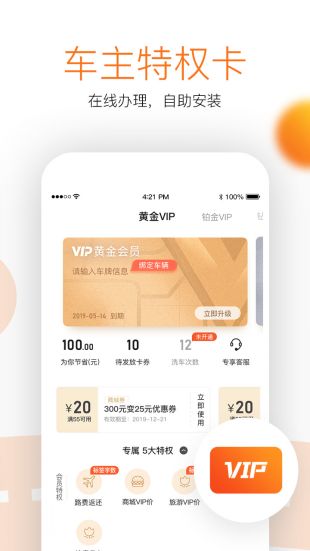 1、【车主VIP会员服务】专享车宝特权、专享通行费折扣、优惠加油、洗车;