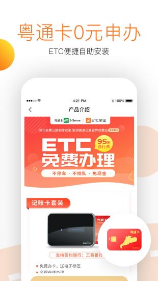 1、ETC车宝app最新手机版下载您可以在线申请ETC电子标签、充值充值粤通卡、查询高速公路通行费账单、