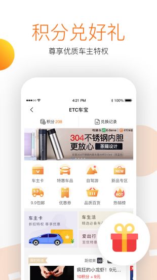 2、使用高速公路积分兑换礼品、享受优惠车主卡VIP,方便用车、洗车、其他维护。