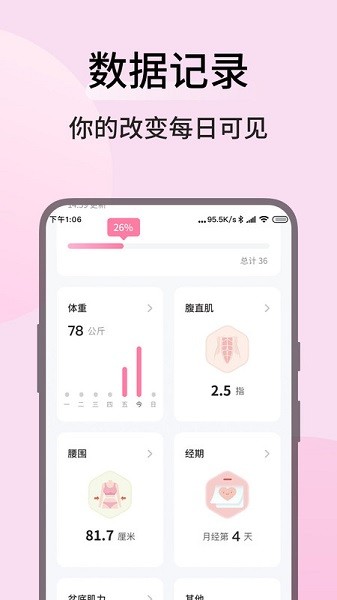 3)每天记录运动情况,帮助用户建立良好的锻炼习惯,及时追踪自己的训练进展。