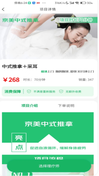 1、大量按摩师可供选择,用户可以根据自己的喜好和需求选择合适的按摩师,并提供个性化服务。