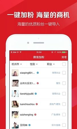 3、一键导入大量优质粉丝,一键快速添加,发现大量商机。