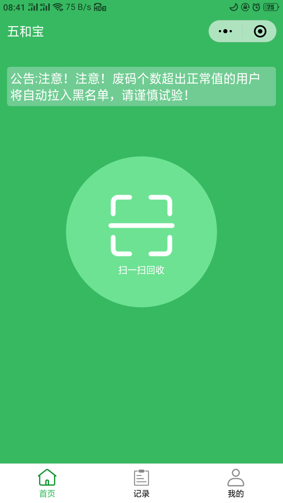 五和宝软件是一款可以帮助用户在手机中进行回收公益活动的手机应用,用户可以将一些可以二次利用的物品进行显示那个回收,软件接到用户的订单之后就进行派人来接单,在订单完成之后,相应的金额就会给用户,用户可以为了环保事业贡献一份自己的力量,对这个软件感兴趣的小伙伴可以自行下载。
