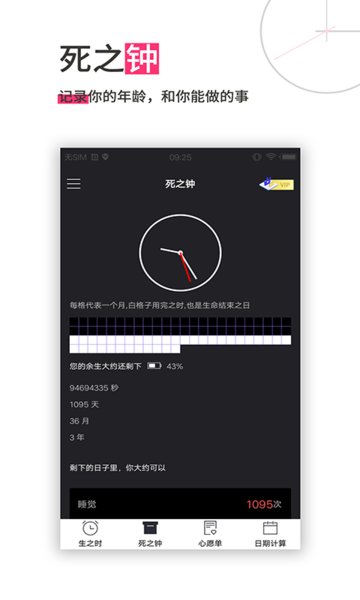 3、生命倒计时,记录你剩下的日子可做多少次事,珍惜时间。