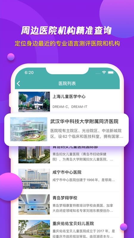 1、并且培声培伴手机版软件还可以为你提供最近的专业语言测评医院、机构的位置信息,