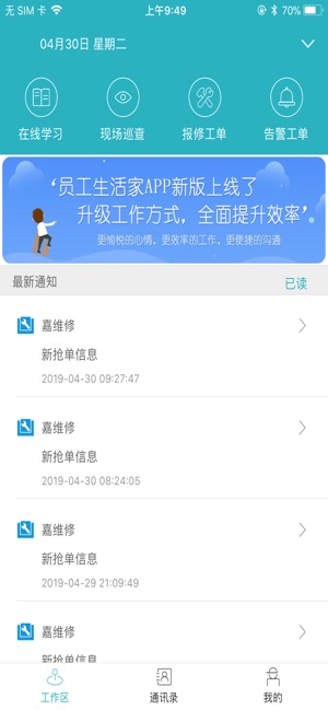 员工生活家是一款基于物业管理漏洞制定的软件,提供了方便的办公、工单管理、维修抢单、学习培训等功能,旨在帮助企业提高工单转化率、增强巡检的真实性、提高管理效率。在线办公、查看工单详情、分类管理、在线考试等,还能及时收到业主签发的维修工单、提醒待办任务、提供丰富的培训课程。