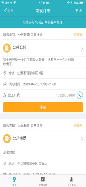 2、维修工单收发:及时收到业主签发的维修工单,并且可以通过软件迅速进行抢单,提高维修响应速度。