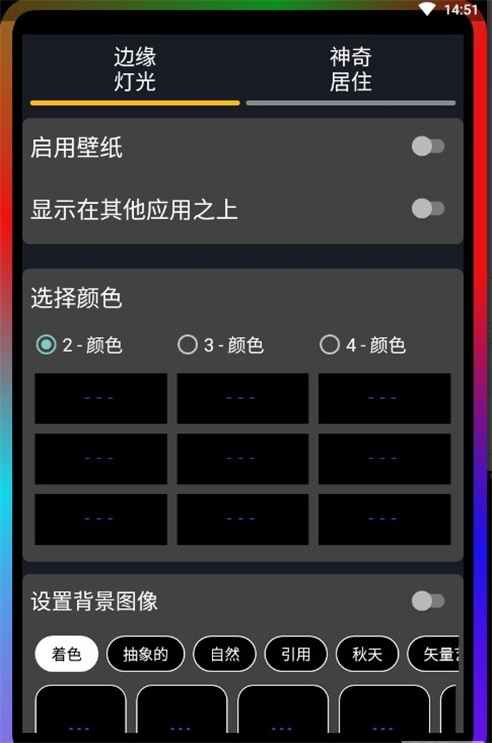 2、改变颜色宽度:用户可以随意改变边缘照明的颜色和宽度,创建出独一无二的个性化壁纸。