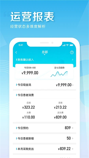 3、财务管理:记录患者的消费情况和医疗费用,自动生成财务报表,方便医生进行财务管理和统计分析。
