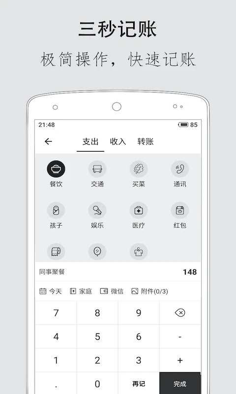 *多种标签选择和在线记账功能,帮助用户方便地分类记录各种支出和收入。