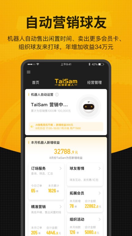 *自动球友营销功能,根据球友的偏好和需求,自动推送相关的促销信息和活动,增加球友的参与度和消费额。