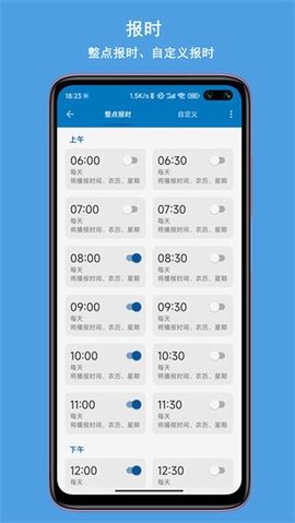 3、报时功能,支持整点报时和自定义报时;支持时间报告间隔、重复次数等设置。