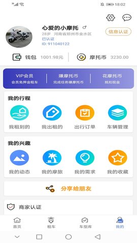 4、可以租摩托车,必须实名认证,年满18周岁,有摩托车D型或E型驾照。