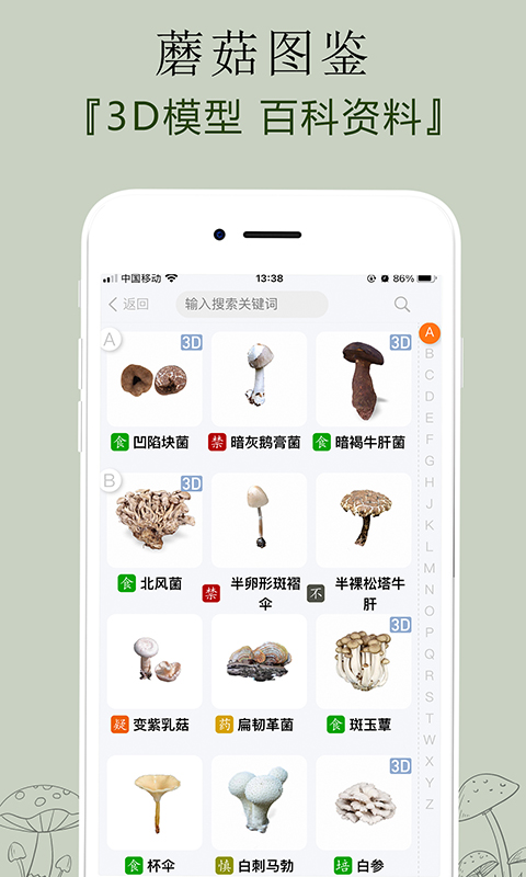 物种数据库:内置了丰富的菌类物种数据库,用户可以根据识别结果查找详细的物种信息,包括菌类的名称、形态特征、生态习性等。