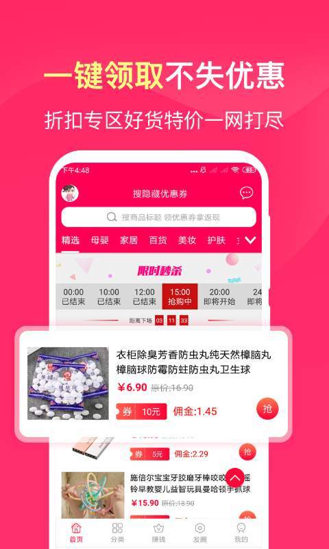 1、网购领优惠券:提供多种优惠券,用户在网购时可以即时领取,省下不少购物费用。