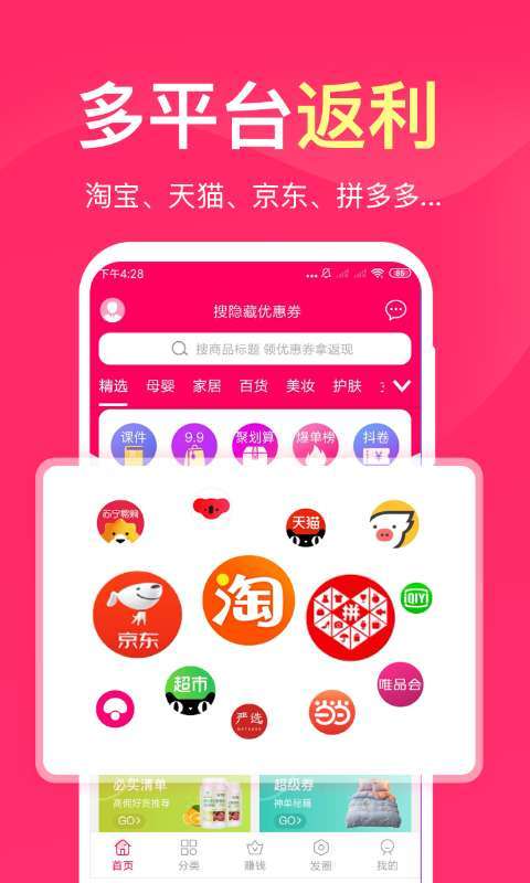 京东淘宝天猫拼多多唯品会,内部大额优惠券,每日上新千万种商品,惊喜不断!
