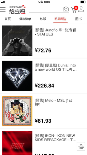 1、海量商品,汇聚了海量韩国各种商品;