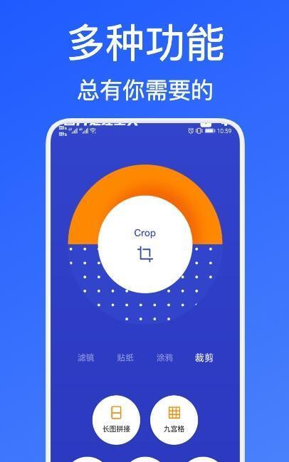 1、多种照片处理功能总有你想要的修图工具,如长图拼接、九方格等。