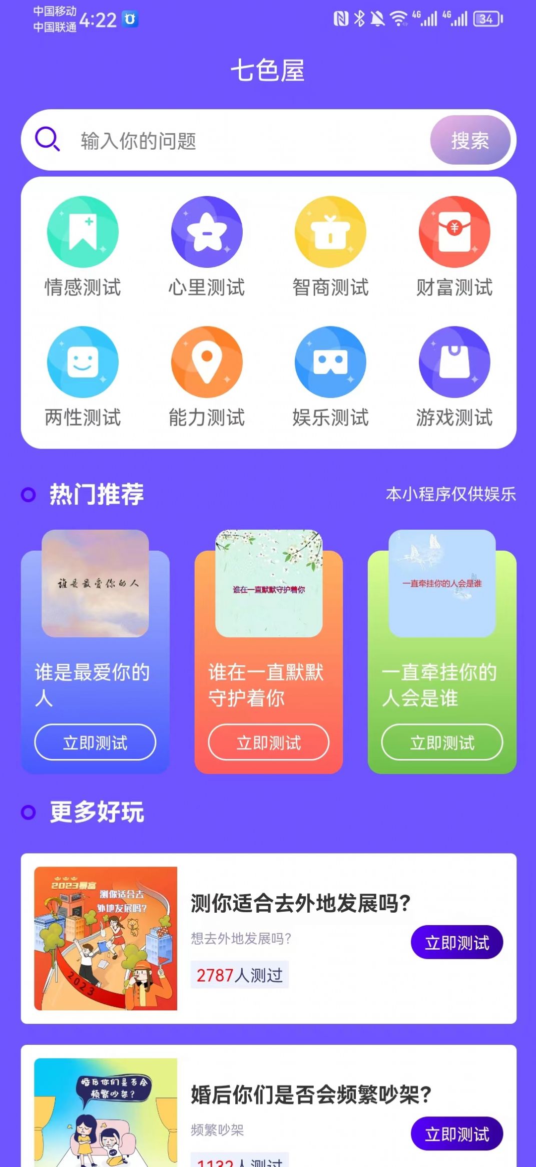3、题目和测试类型会定期更新,用户可以及时了解更多新的内容和测试类型。