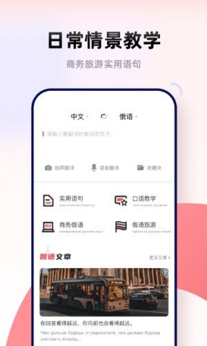 俄文翻译菌是一款非常实用的俄语语言学习翻译的工具软件,软件精心准备了丰富的学习俄语教材课程资源,有着非常专业的为你提供学习辅导咨询,精选推荐热门和俄语相关的新闻内容和真实情景学习教学,帮助用户轻松的学习掌握俄语语言,还有非常强大的拍照语言翻译转换的功能。