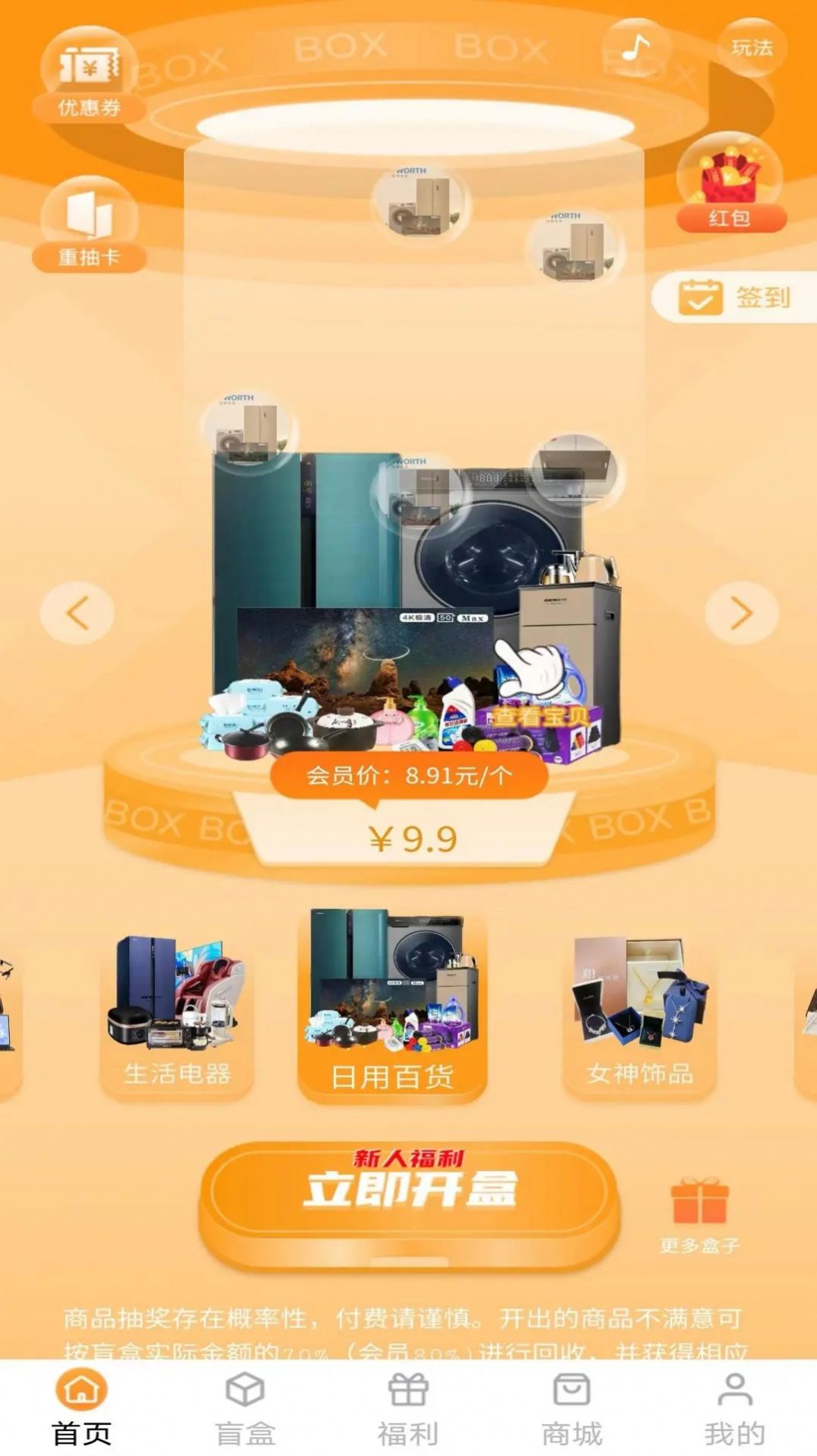 1、充满惊喜的盲盒购物平台,在线拆盲盒以及购买所需的产品吧;