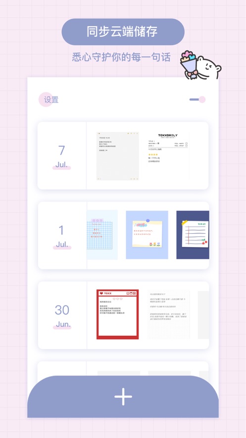 toxx手账是一款能够记录用户每天生活日常的工具软件,软件内的用户可以设置每天的工作任务进行功能提醒服务,提供了很多好看的个性背景模板可以自由切换使用,支持了云端同步保存收藏缓存的功能,一键打开可以编写自己的故事备用录,能智能的生成制作的时间日期和管理手账记录数据。