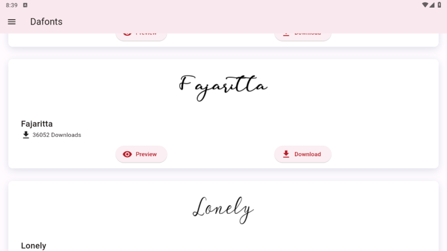 DaFont字体是一款提供个性化字体样式的工具软件,软件中可以为你推荐各种好看精致的个性样式免费使用选择,可通过筛选的方式来获取相关的类目,一键查询预览功能,能够轻松的找到喜欢的字体,一键引用下载,就能让你用户不一样好看的字体效果,喜欢的话可以来下载试一试。
