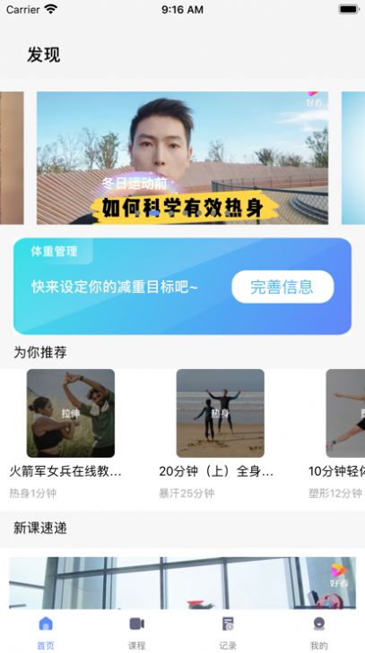 2、首页推送最新的健身视频,还可以下载自己所需的视频;